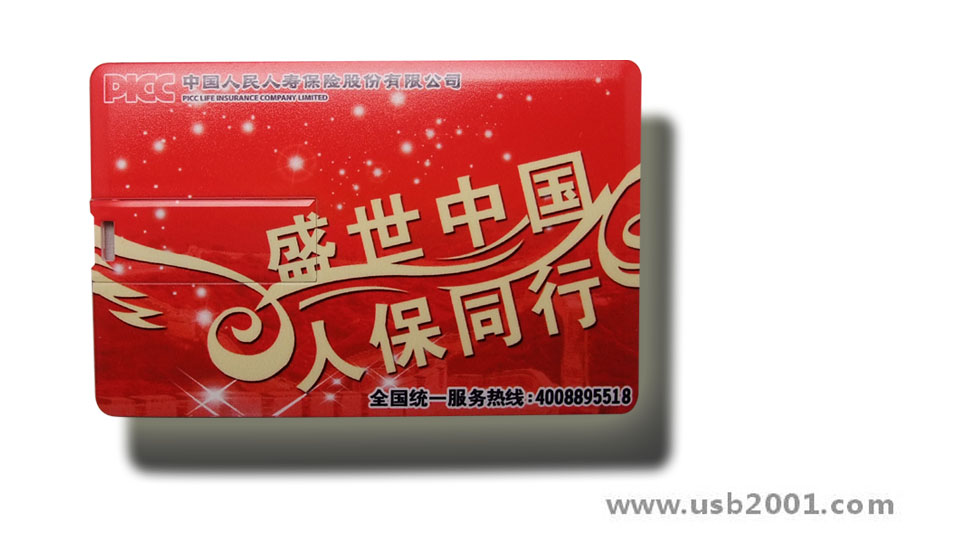 人壽保險定制的此款卡片式U盤采用新型極速Flash存儲芯片,可擦寫100萬次以上,保存長達(dá)十年。超薄卡式外型,可插入皮夾,衣...