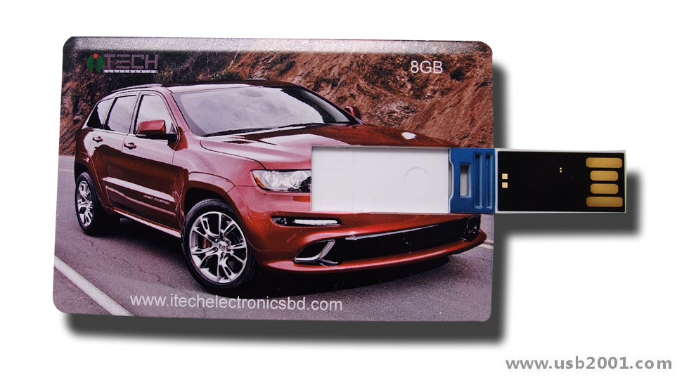這款卡片式U盤有防水防塵功能,表面噴油后采用高清彩印廣告畫面,可以360度旋轉(zhuǎn)放在錢包里面很方便。為公司做免費廣告又...