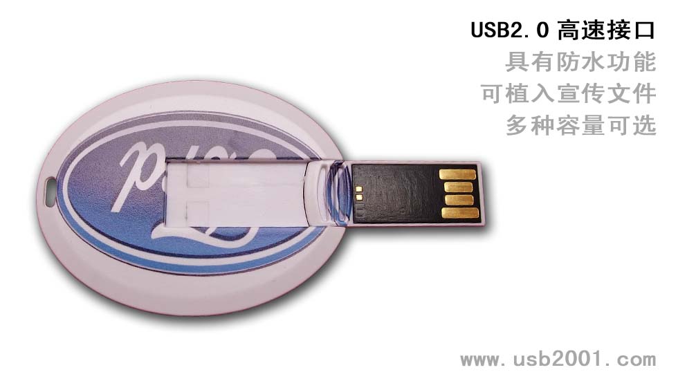 此U盤外形簡約小巧,采用了ABS工程塑料材質(zhì)制造,翻斗式USB接口,接口可以沿卡片可進(jìn)行自由旋轉(zhuǎn),連接電腦十分方便。作為企...