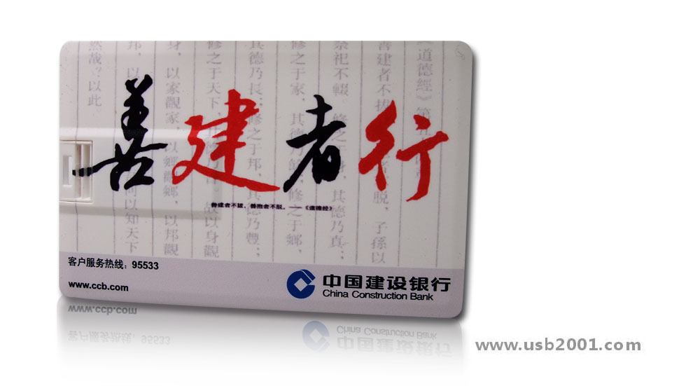 精心為中國建設(shè)銀行設(shè)計(jì)的卡片U盤,簡約大氣。可印制LOGO.善建者行,成其久遠(yuǎn)。充分體現(xiàn)了建行“以客戶為中心”的經(jīng)營理...